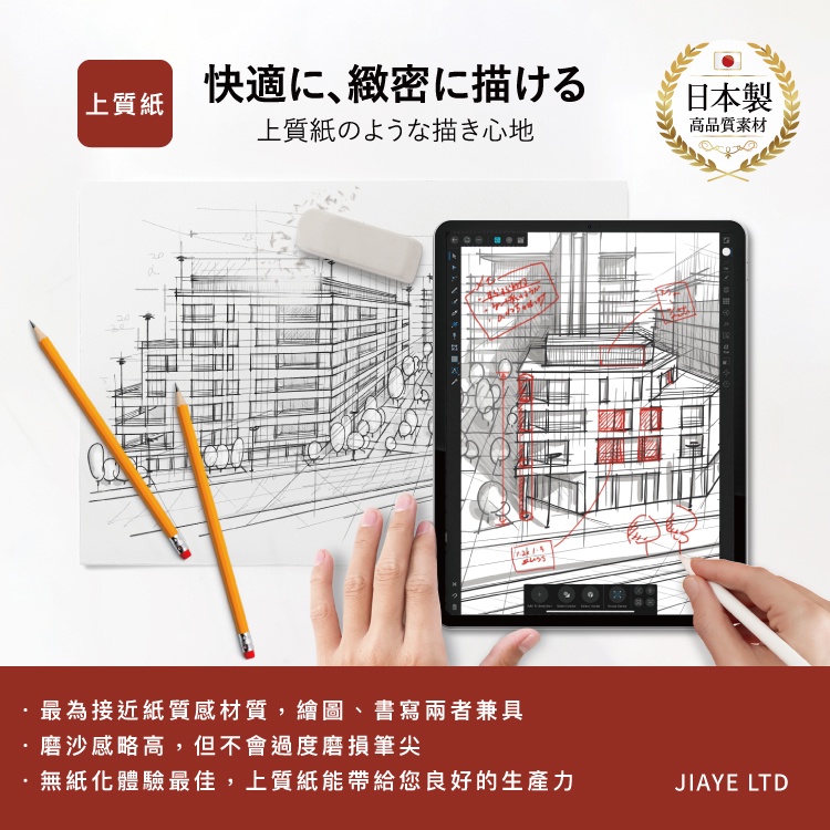 簡單說明一下,類紙膜與一般的保護貼不同,主要用途是用來增加筆觸的摩擦感,因此在做筆記、繪畫的時候,比較不會因為螢幕觸感太滑而感到困擾!但相對來說,因為類紙膜的顆粒較大,多少會影響螢幕畫質,建議可以考量平時的使用習慣,選擇適合自己的類紙膜!